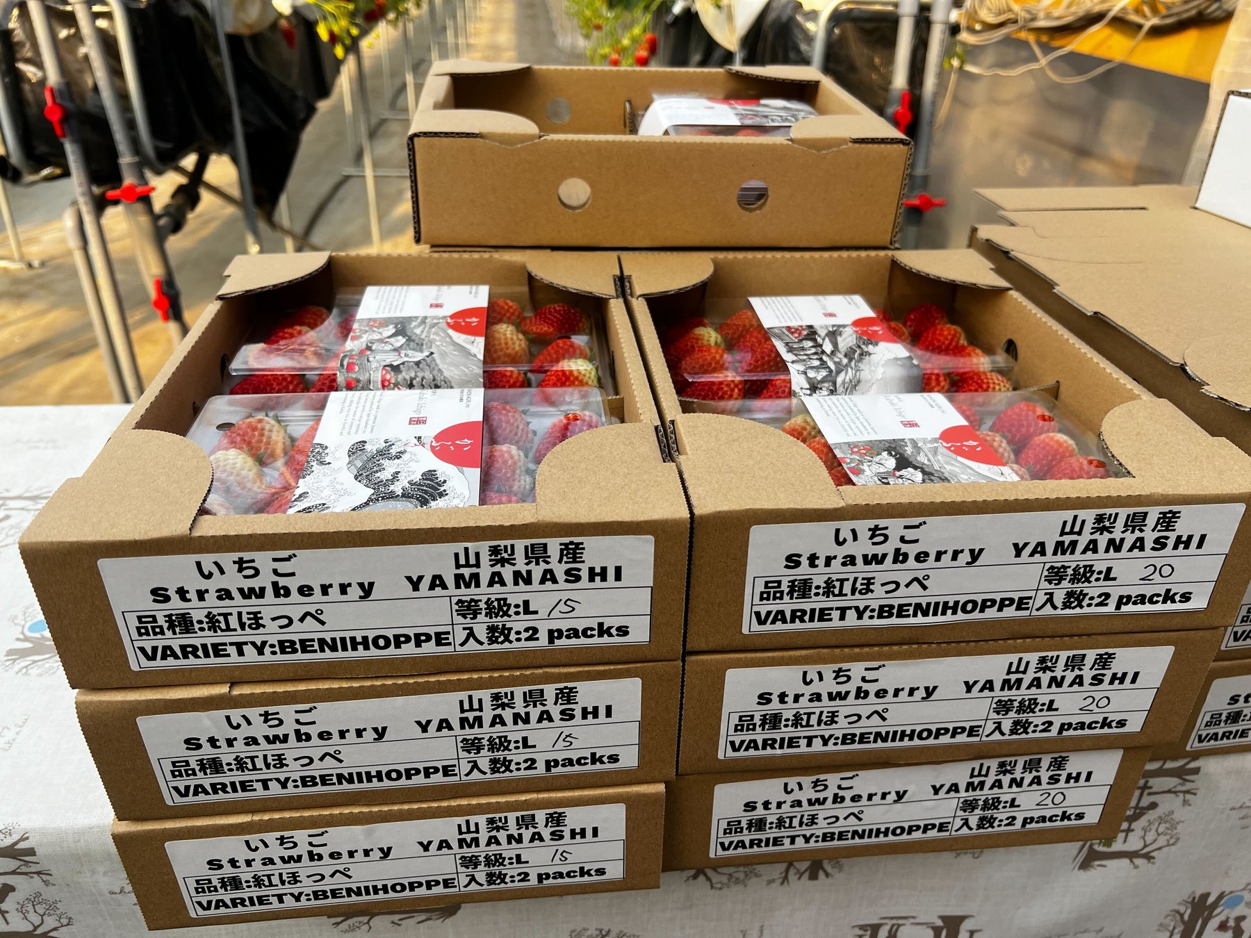 「Kabuki Ichigo(カブキ・イチゴ)」のラベルが貼られた山梨県産いちご