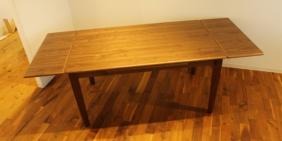 エクステンション部分を収納すると幅140cmとなり、4人でのお食事にぴったり。