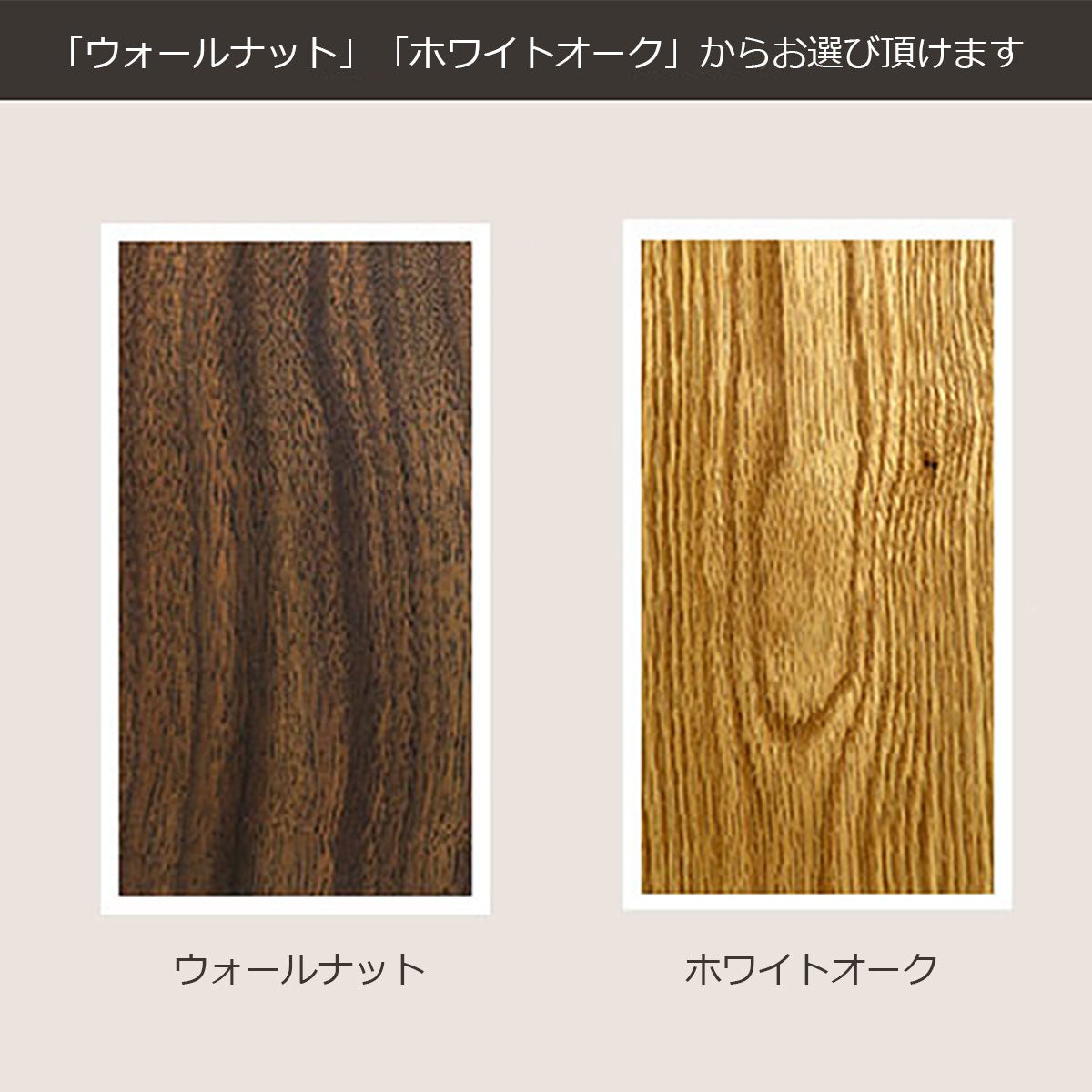 本体は「ウォールナット材」と「ホワイトオーク材」の2種類をご用意。