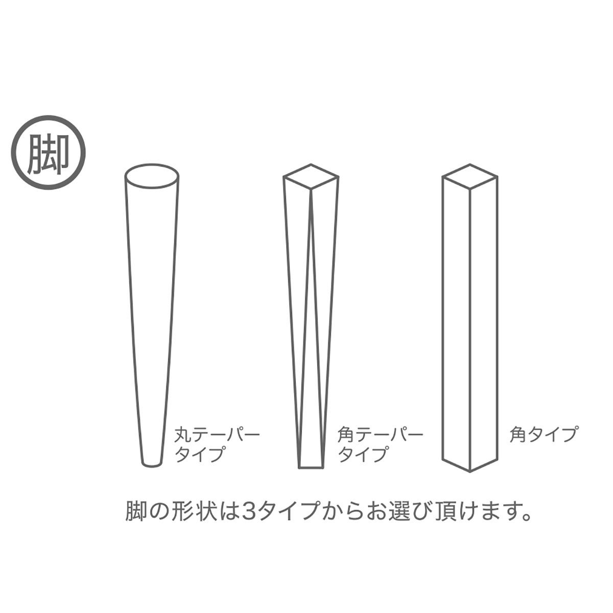 脚のデザインは3タイプからお選び頂けます。