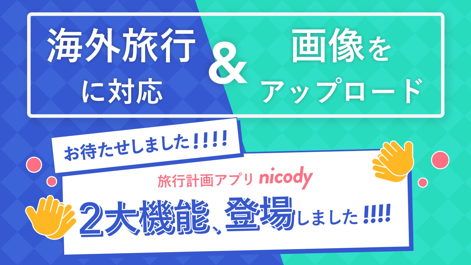 旅行計画アプリ「nicody(ニコディ)」を運営する株式会社結.JAPAN(渋谷区、代表取締役 中山雅久理)は、新機能として「海外旅行対応」「画像アップロード機能」の提供を開始したことをお知らせいたします。