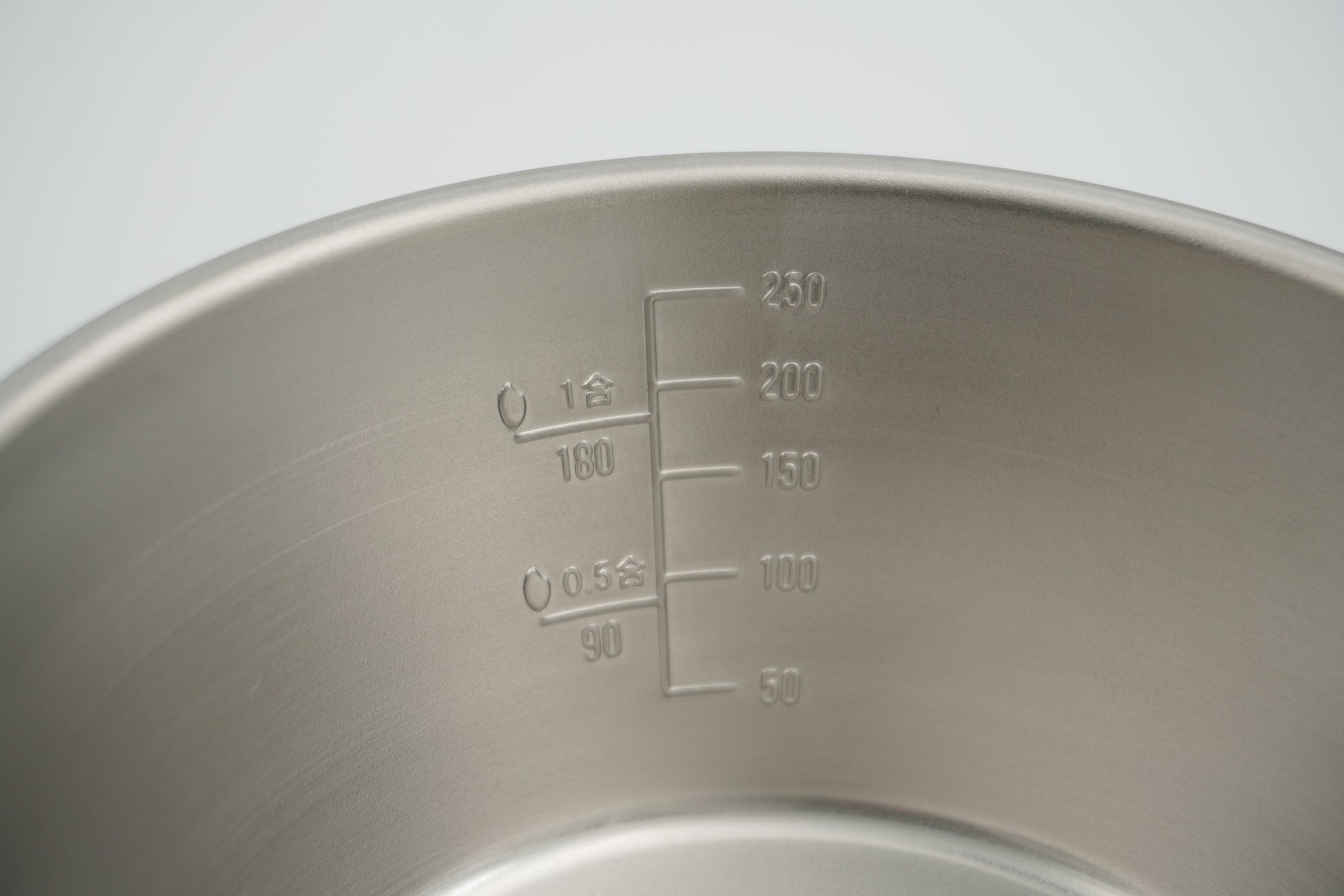 シェラカップ内側には50mlごとの目盛りのほかに0.5合、1合のお米を計量できる目盛りがついています。