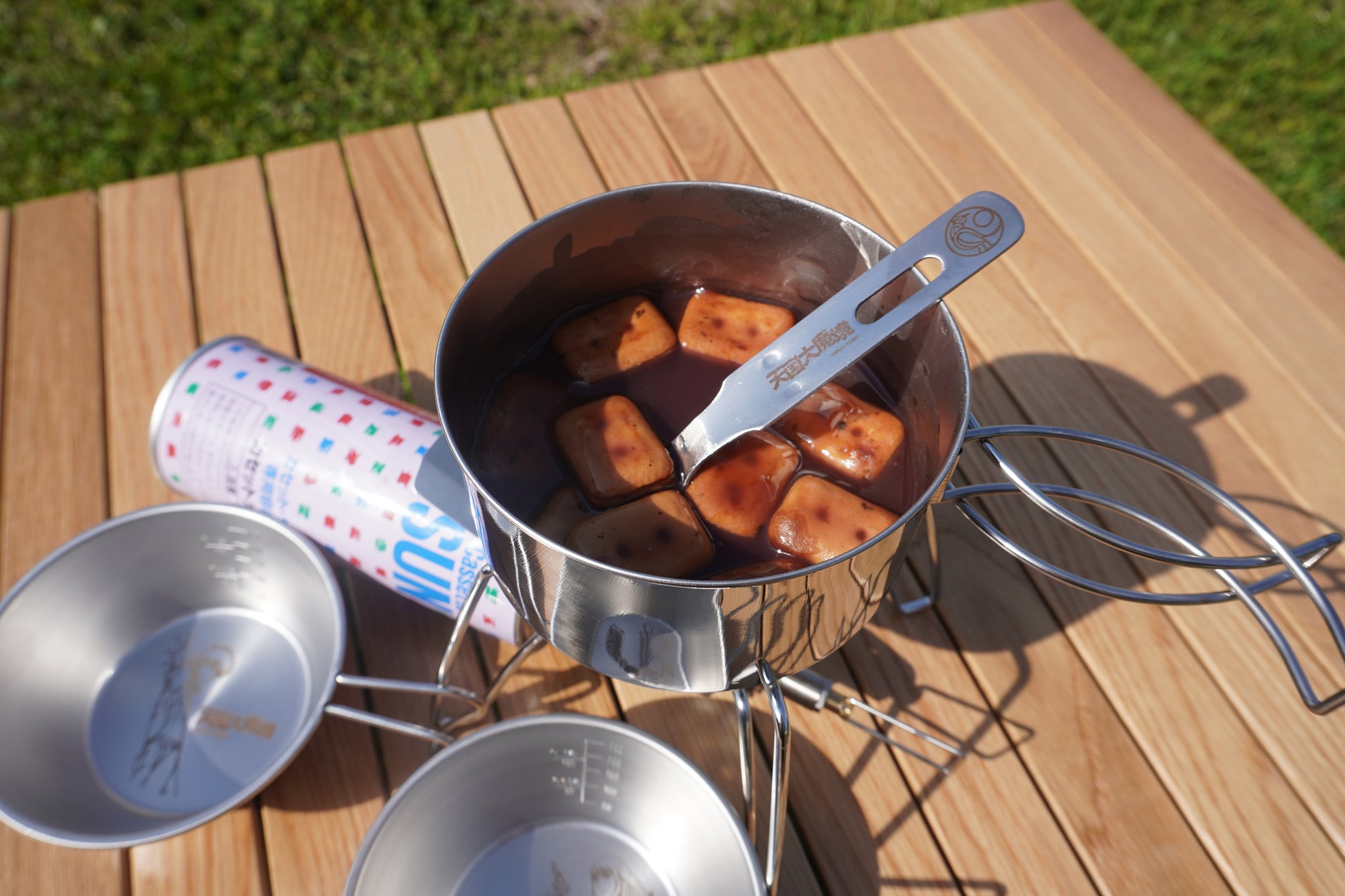 作中でマルとキルコが食べていたようかんと乾パンで作る「ヨーパン汁」の調理に最適な、ステンレスクッカー。