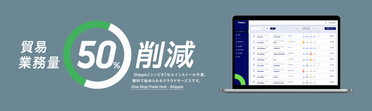 Shippio(シッピオ)は「理想の物流体験を社会に実装する」をミッションに掲げ、国際物流のDX(デジタルトランスフォーメーション)推進を目的に、デジタルフォワーディングサービスを展開しています。