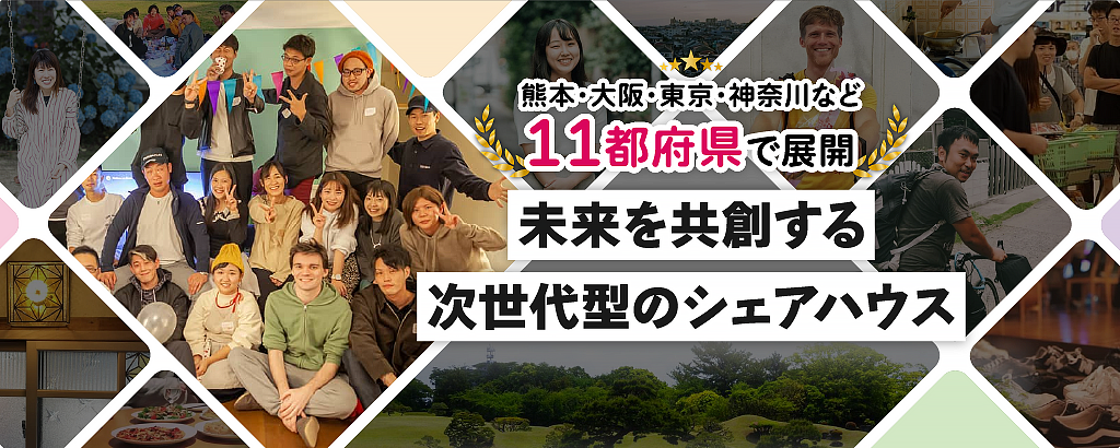 2012年に熊本で創業し、熊本、福岡、東京、横浜、鎌倉・湘南、横浜、埼玉、千葉、大阪、長野、栃木の11エリアで合計61棟のシェアハウスを運営しています。