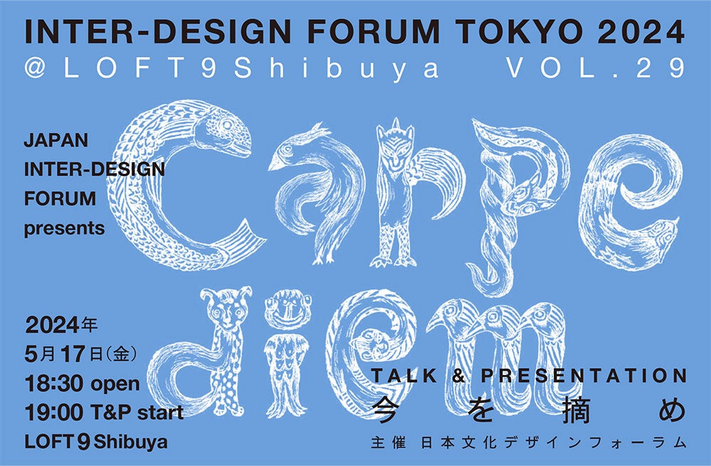 アート、デザイン、建築、科学、文学、食、音楽など多彩な分野の専門家がジャンルの垣根を超えて活動している一般社団法人日本文化デザインフォーラム(理事長:水野誠一、以下JIDF)は、様々な分野の著名人によるトーク&プレゼンテーション『Carpe diem=今を摘め』VOL.29を、2024年5月17日(金)に東京・渋谷のLOFT9 Shibuyaで開催します。