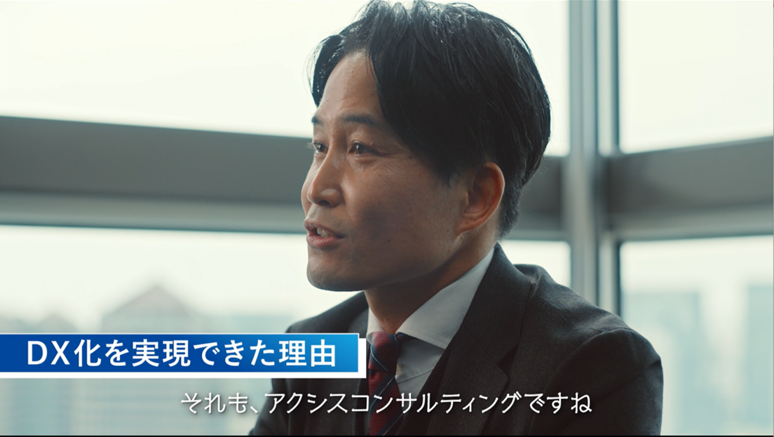 成功した社長が「成功の秘訣」を話すインタビュー形式動画。社長とインタビュアーによるテンポ感のある掛け合いを続けると、いつしかアクシスコンサルティングばかりを語る展開に。経営者の課題解決と価値創造のパートナーとして、企業を成功に導く存在がいること訴求します。