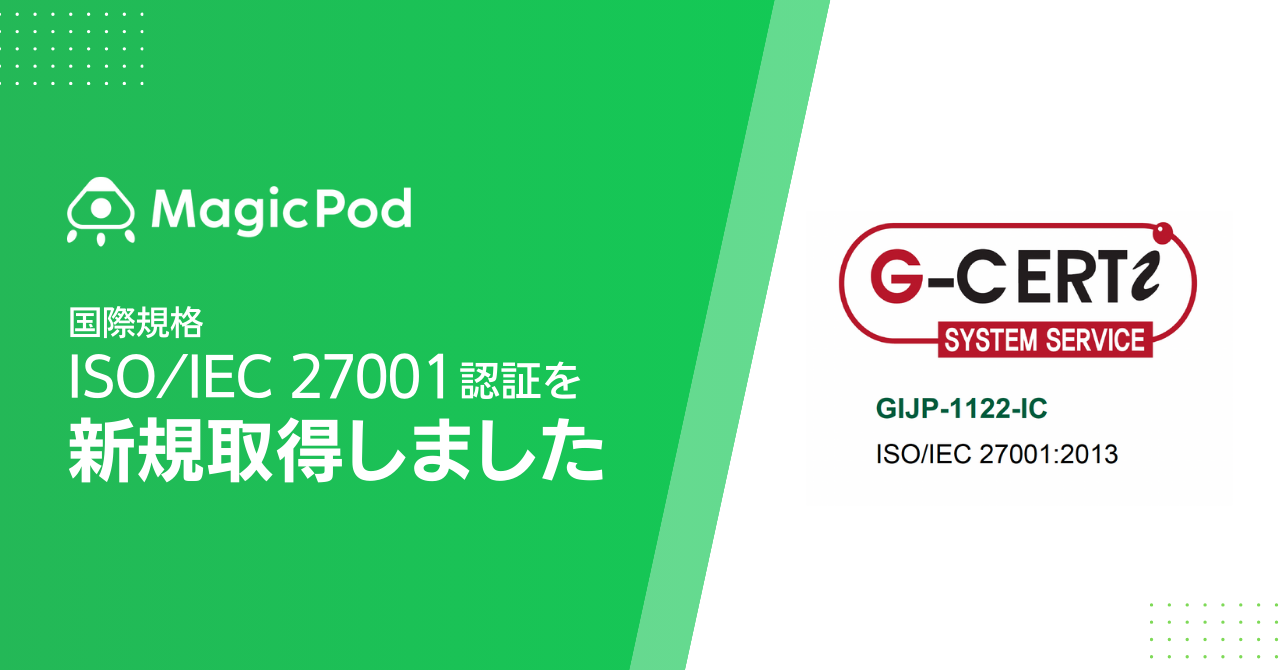 株式会社MagicPodは、モバイルアプリおよびブラウザ(ウェブアプリ)のAIテスト自動化クラウドサービス「MagicPod」の提供を通じて、さまざまな企業の高速・高品質なソフトウェア開発を支援してまいりました。多くの開発・テストの現場での活⽤が広がるなか、安心してサービスをお使いいただけるよう、より一層情報セキュリティを含む組織全体の管理体制や運用の強化し対応すべく、国際基準である「ISO/IEC 27001」認証を取得することといたしました。今後も、取得に関わる取り組みに限らず、ご利用企業様、パートナー様に信頼される情報セキュリティ維持の活動を行ってまいります。