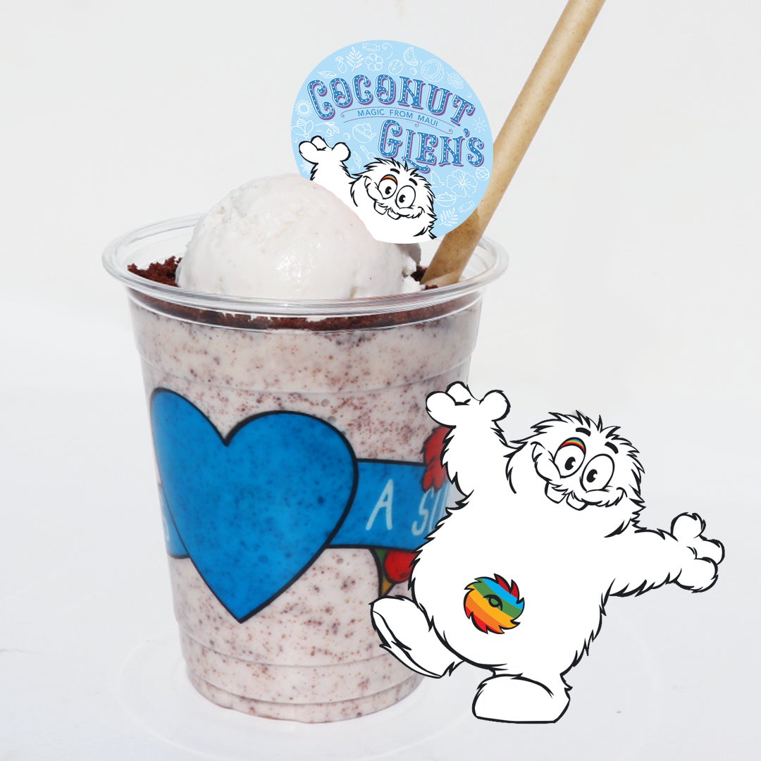 ココナッツアイスクリームとヴィーガンチョコチャンククッキーをシェイクに!ヴィーガンとは思えないリッチなシェイクが完成しました。さらにココナッツアイスをトッピング!