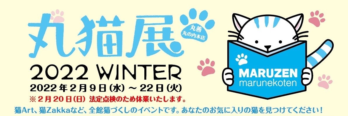 丸善 丸の内本店(東京都千代田区)は、2022年2月9日(水)より「丸猫展 2022 Winter」と題した、全館猫づくしのイベント/フェアを開催致します。期間中は4階ギャラリー・文具イベントスペースを中心に、猫に関連した絵画や陶芸、立体造形などのアート作品の展示・販売、猫に関連した雑貨の販売を行います。