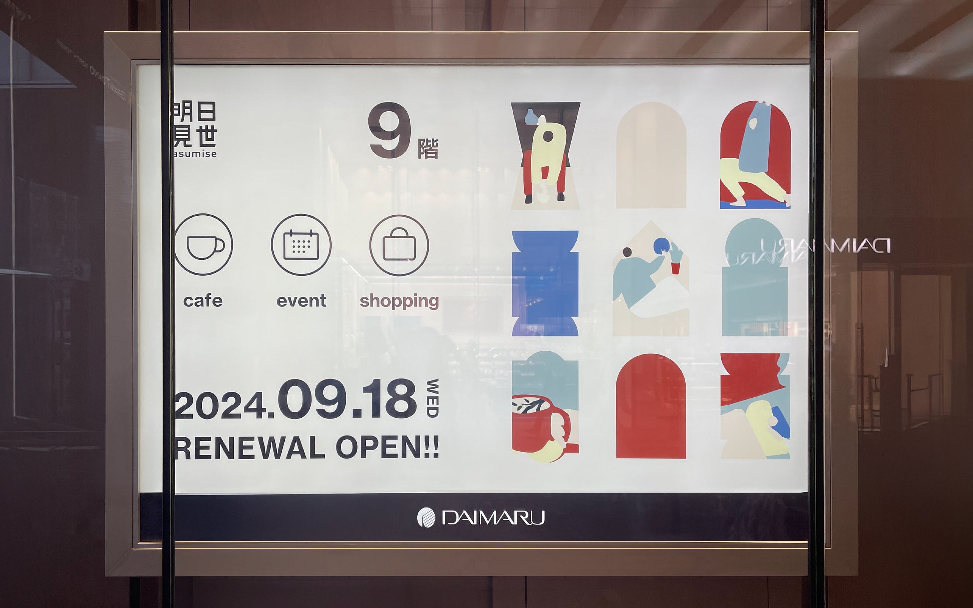 リニューアルオープンに伴い、ノングリッドでは、『明日見世』のデザインコンセプト、グラフィック、Web、インスタレーション、VP(VMD)の、企画からアートディレクション、クリエイティブディレクション、実装/施工までをトータルでデザインしました。