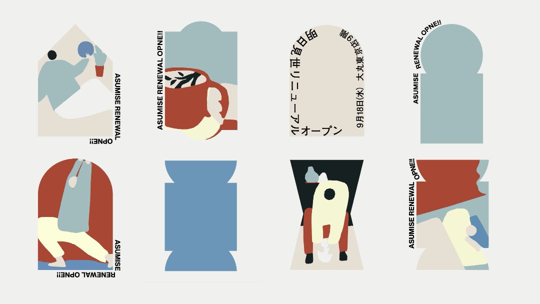 コンセプトビジュアルは『窓・扉』です。リニューアルした『明日見世』は、新しい景色や新鮮な空気を呼び込む場であり、新たな「出会い」を象徴するメタファーとして『窓・扉』を用いました。全てのデザインはこのビジュアルアイデンティティをベースに展開しています。また、『明日見世』では、毎シーズン300以上のブランドから厳選したアイテムを提案し、人・地域・自然の未来を育む役割を果たしています。紹介する商品が“主役“であるため、『窓・扉』のモチーフは、額縁のように主役を魅力的に見せるデザインとして、抽象的かつ洗練されたコンセプトビジュアルに仕上げています。また、自然からインスピレーションを受けた配色は、『明日見世』の商品のラインアップを引き立てるトーンで組み合わせられています。
