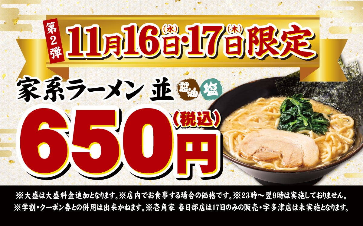 2日で約3万杯が売れた壱角家の大好評キャンペーンが復活 2日間限定で『家系ラーメン』を税込650円で提供