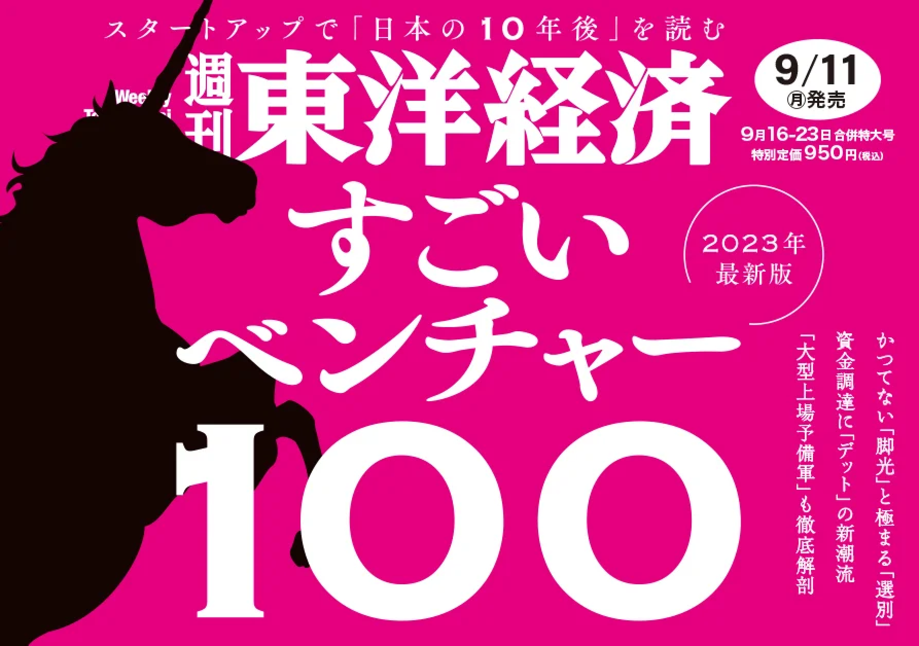 週刊東洋経済における特集で、未上場ベンチャーの中から資本調達の大きさ、ユニークなビジネスモデルや先進的な技術を持つ独自性等を基準に、未来のユニコーン候補となる企業が毎年新規100社選定されています。