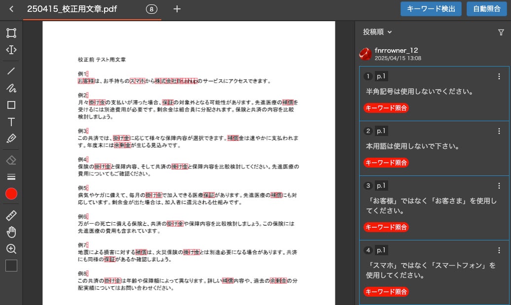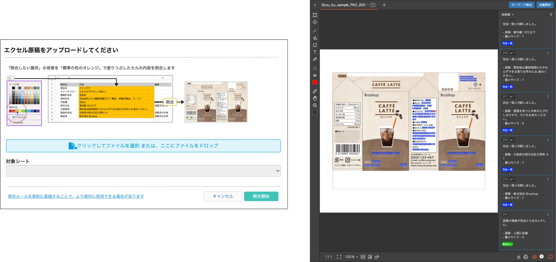 ②原稿とデザインデータの「自動照合」で作業時間の大幅短縮、見落とし防止