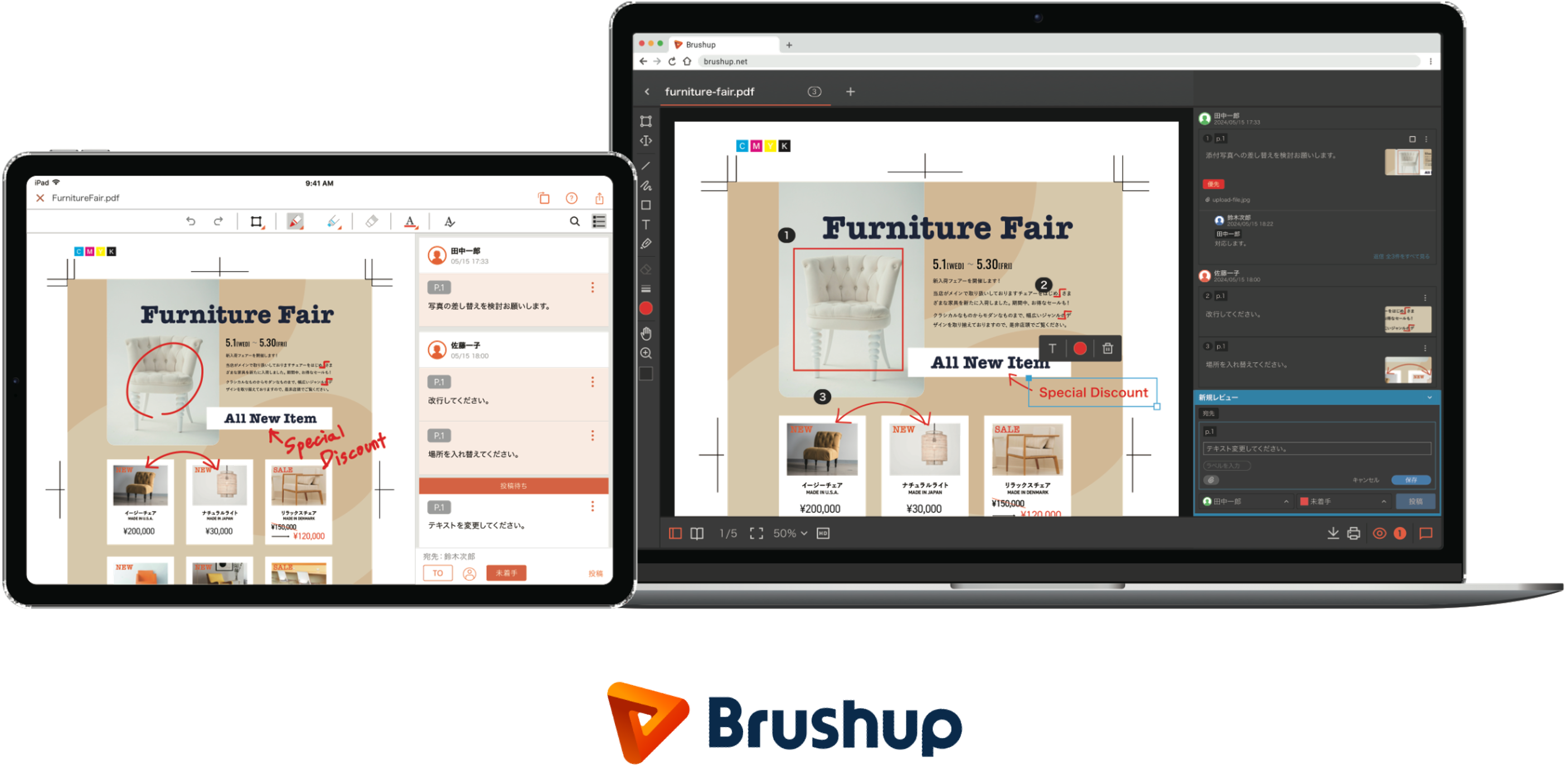 Brushup はチラシ・カタログ、商品パッケージ、学習教材、マンガ、Webコンテンツ、動画など、さまざまなコンテンツ制作現場のためのコミュニケーションプラットフォームです。