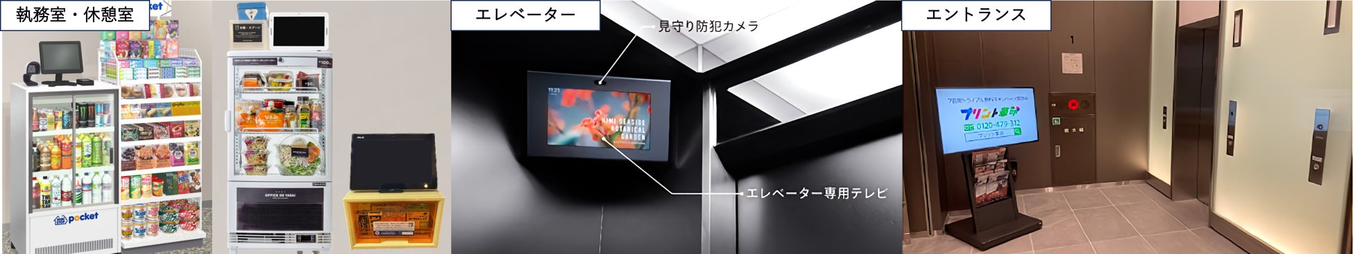 従来の設置場所は主にオフィスビル内のエレベーターやビルエントランス、執務室・休憩室などでしたが、このたび株式会社バカンの提供しているトイレ内サイネージUnveil®と協業し、オフィスビルのトイレ内にも広告の配信が可能になりました。