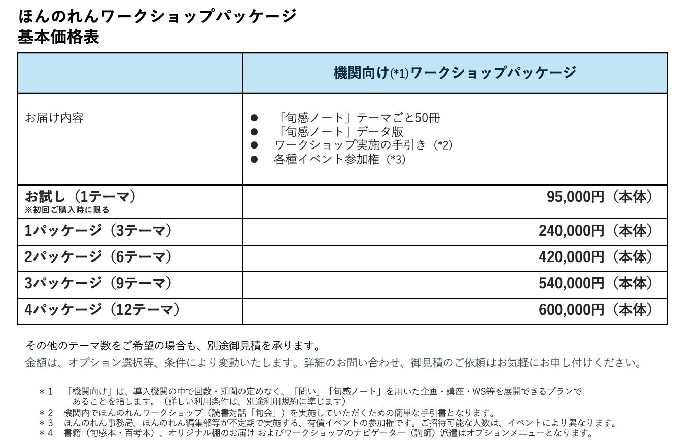 2025年10月より、「ほんのれん」ワークショップパッケージのオンデマンド購入を提供開始します。ワークショップパッケージを95,000円(税別・初回限定のお試し1テーマパック)からお求めいただけるようになります。