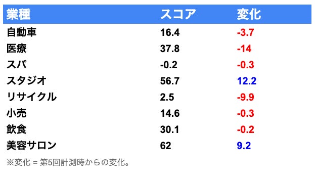 今回、第5回からの変化が大きかったのが、医療及びスタジオ業界でした。各店舗ごとに変動の理由はそれぞれに存在しているため具体的な言及は難しいですが、高評価・低評価が入る際には全体的に以下の傾向が見られました。