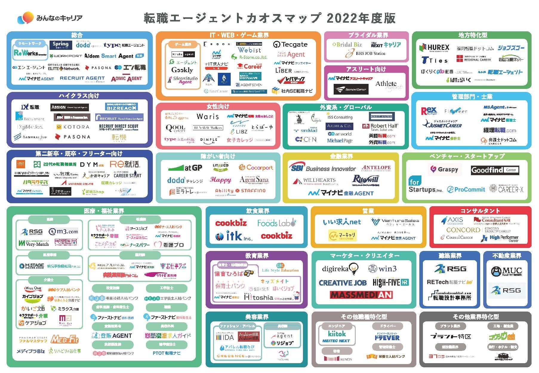 株式会社エージェントが運営する口コミ情報サイト『みんなのキャリア』が「転職エージェントカオスマップ 2022年版」を公開