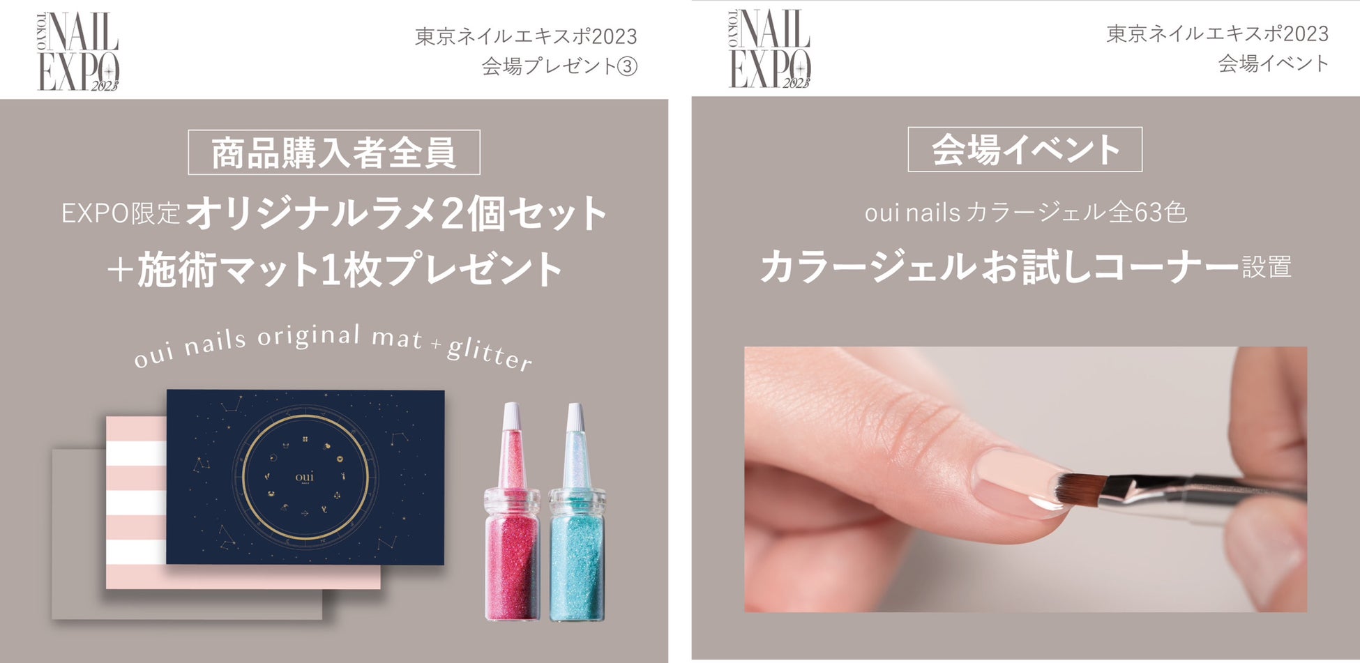 「oui nails」のブースでは、oui nailsの世界観を感じていただきながら、実際に手に取ってoui nails商品をお試しいただけます。