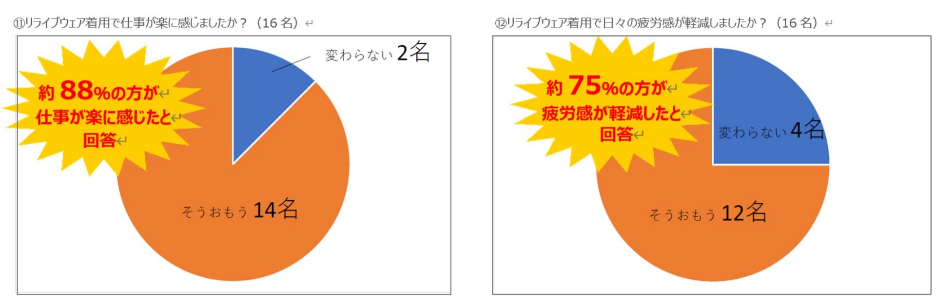 14名が仕事が楽に、12名が疲労感が軽減されたと実感