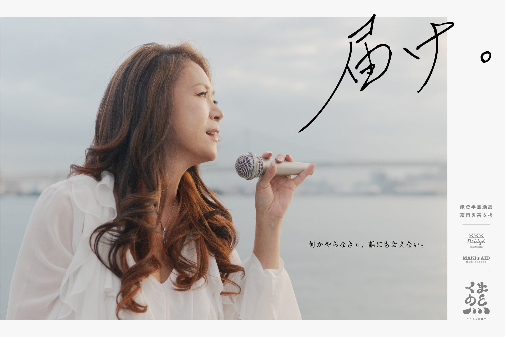 熊本地震をきっかけに生まれ、日本各地で発生する災害への寄付活動を続けてきたBRIDGE KUMAMOTOが架け橋となり、大黒摩季さんが2024年12月5日(木)に熊本で開催されるチャリティライブをゴールにみなさまから寄付を集め、その全額を大黒摩季さんに託し、能登半島への支援を行います。