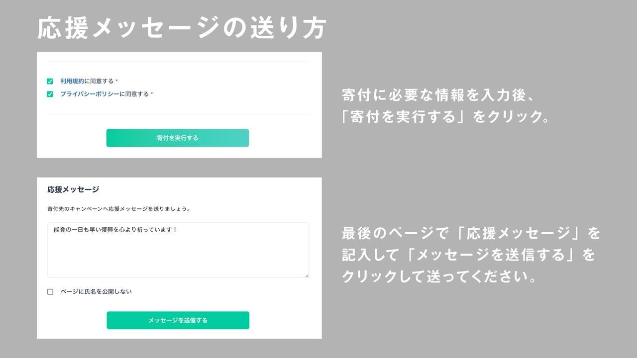また、みなさまの温かい応援メッセージも大黒摩季さんはじめ、プロの方々が一部のメッセージを代読して被災地域に届けます。みんなで能登にエールを送りましょう!