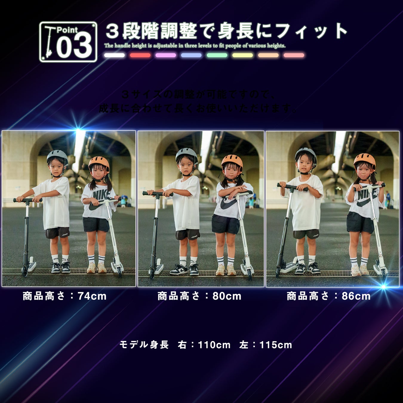 3. 3段階の高さ調節可能!成長に合わせてなが〜く使える