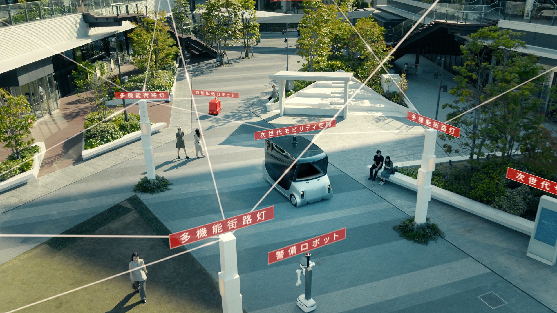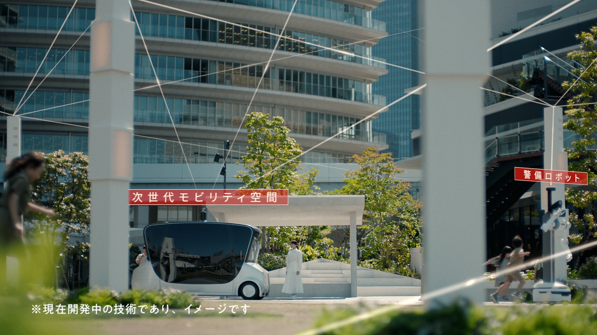 その後も、人流分析や情報アナウンスなどの機能を搭載した多機能街路灯や、警備ロボット、車内でXR体験ができる次世代モビリティ空間など、最新技術が溶け込んでいる様子が感じられる内容となっています。
