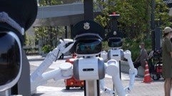 人の代わりに、巡回や監視をしてくれる警備ロボットです。不審者の発見や、声かけ・案内をすることが可能です。5G通信により、高精細映像を遠隔地のオペレーターに伝送することができます。