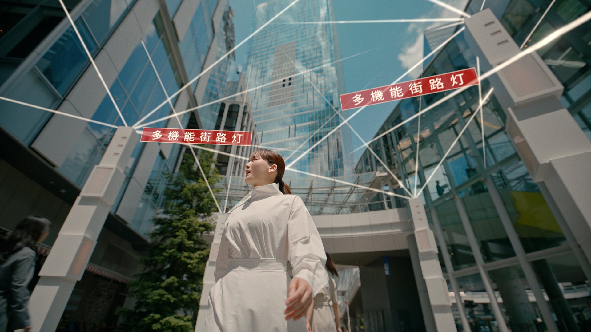 今回のCMは、ドコモが街全体をネットワークでつないで、皆さんの暮らしをもっと便利におもしろくしていくというテーマのCMです。様々な現在の技術や少し先の未来の技術と共演しています。