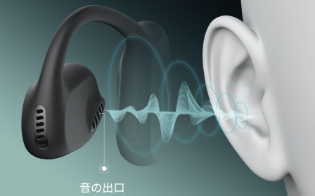 耳穴を塞がずドライバーユニットを耳もとへ浮くよう配置するオープンイヤー型を採用しま した。耳掛け構造だから運動してもズレにくく、周囲の音を排除しないので屋外でも安全にご利用いただけます。さらに左右ユニットをつなぐワイヤーが後頭部に回り込むネックバン ドタイプにすることで、首周りの煩わしさを軽減し長時間装着しても疲れません。