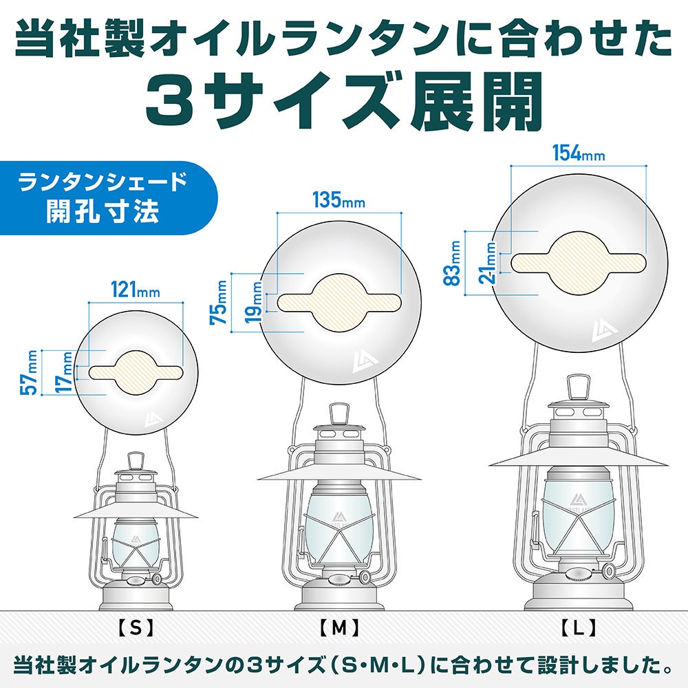 ~VASTLAND製オイルランタンの3サイズ(S・M・L)に合わせて設計。各サイズのオイルランタンにジャストフィットします~