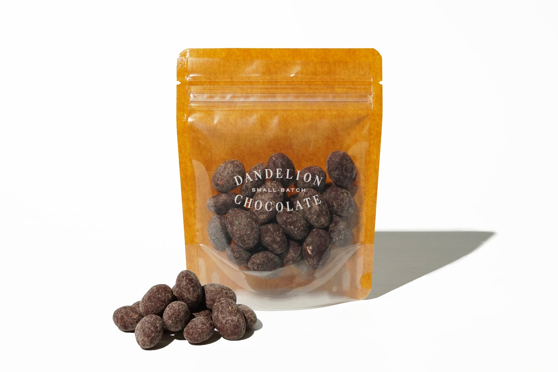 カリフォルニア産のシングルオリジンアーモンドをキャラメリゼし、ドミニカ共和国産カカオ70%のチョコレートを贅沢に使ってコーティングしました。