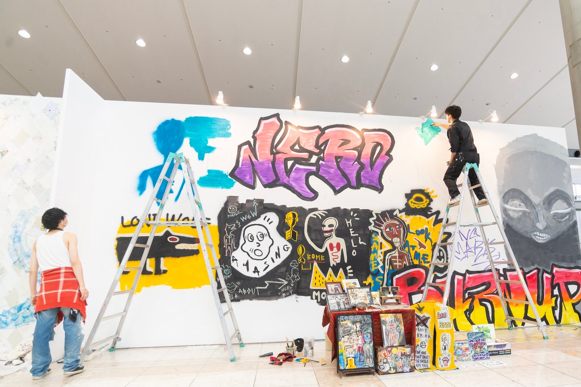 会期の2日間をかけて作品が完成するライブペイント。大きな壁に描かれていく作品を間近でお楽しみいただけるデザフェスならではのエリアです。