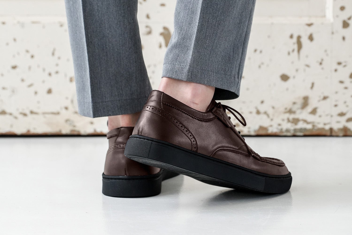 ビジネスカジュアルの「新定番」を目指して構想を重ねた日本製ハイブリッドスニーカー「KLAVE JP(クレイブ・ジェイピー)」に新色ブラウンが登場。