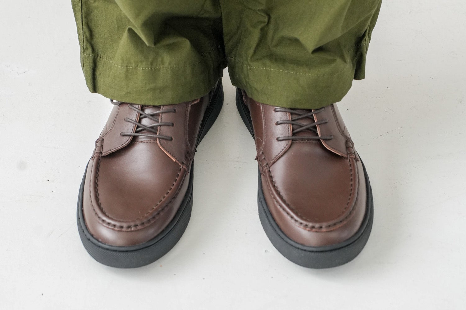 アッパーには日本製レザー「オイルキティ」を使用。鞣しの時点でオイルを入れることで得られる革らしいしっとりとした質感が魅力。履くたびに足に馴染み、エイジングを楽しむことができます。