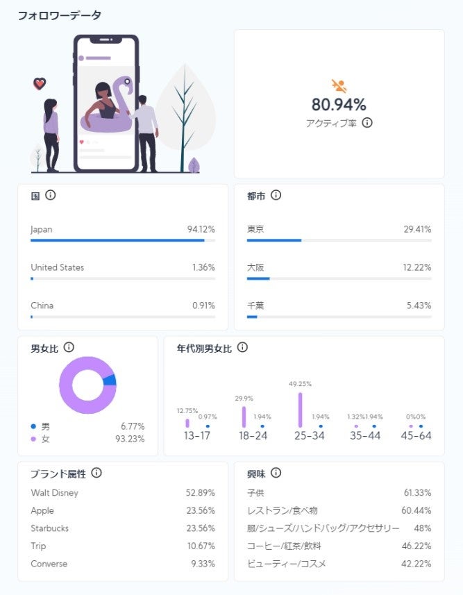 『A stream』はこれまで取得不可能であった、インフルエンサーのフォロワーの”興味関心”や”ブランドの好み”といったサイコグラフィック情報の分析を可能にする新時代のAIマーケティングツールです。