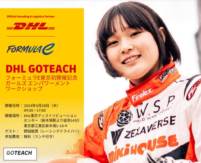 本ワークショップは、日本人初の女性F1/フォーミュラEドライバーを目指す野田樹潤さん、マヌエラ・ジャンニ氏(DHLモータースポーツ物流担当最高責任者)など、国境とジェンダーの壁を越えて世界の第一線で活躍している女性たちと会える機会となっております。