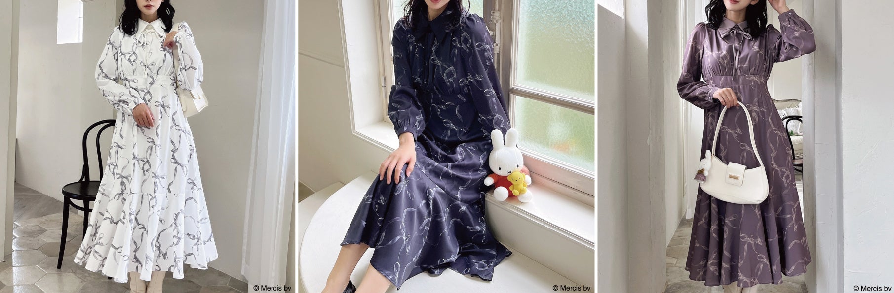 miffy 襟付きフレアマーメイドワンピース 各 ¥9,790(tax in)