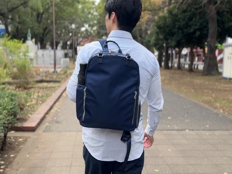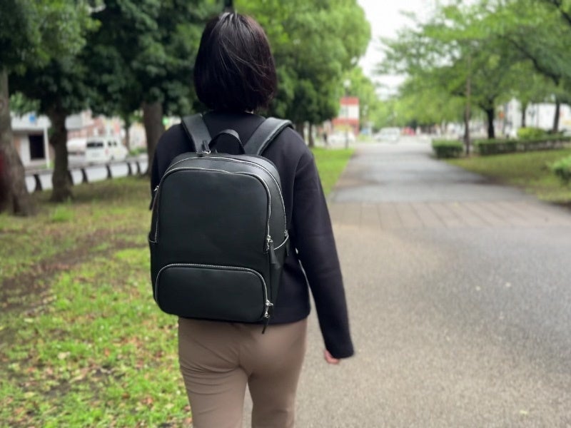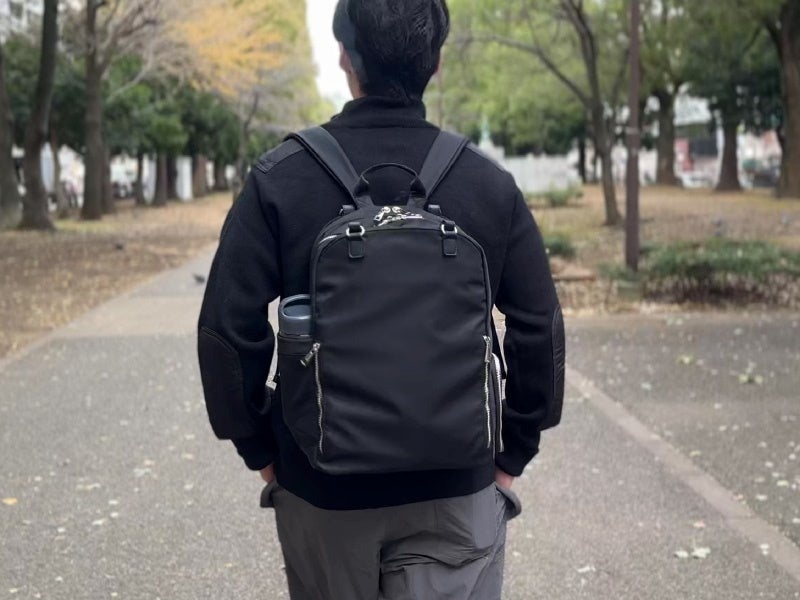 フロアサックは、高級感のある合成皮革を使用し、独立したPCルーム(13インチ)、2階建て構造の保冷・保温スペースを装備した多機能リュックです。シンプルなデザインでビジネスシーンにも最適です。