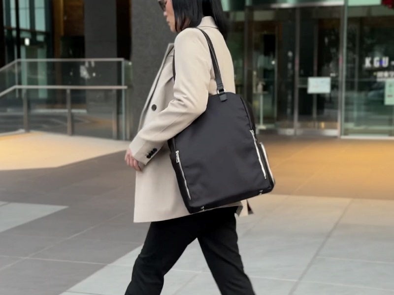 ルーフスリムは、リュックとトートバッグを簡単にアレンジして使える2WAYモデルです。行きはトートバッグで荷物が増える帰りはリュックにしたり、通勤はリュックで外回りはトートバッグなど、シーンに応じてアレンジして使用できます。独立したPCルーム(13インチ)も装備しているのでオンオフ使えます。