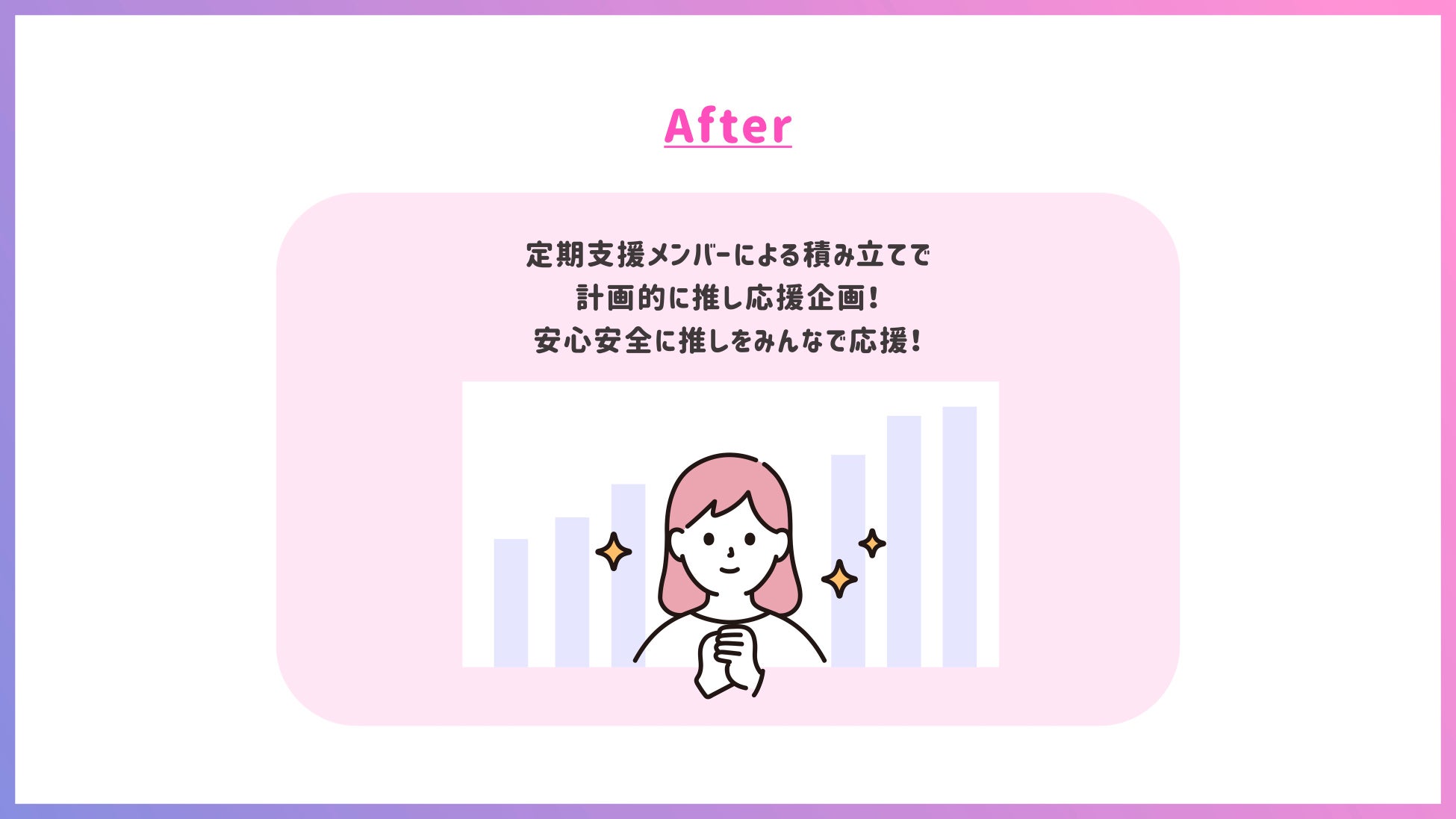 これにより、ファンダム運営者とサブスク登録メンバーが推し活をより安定して行える環境を提供します。