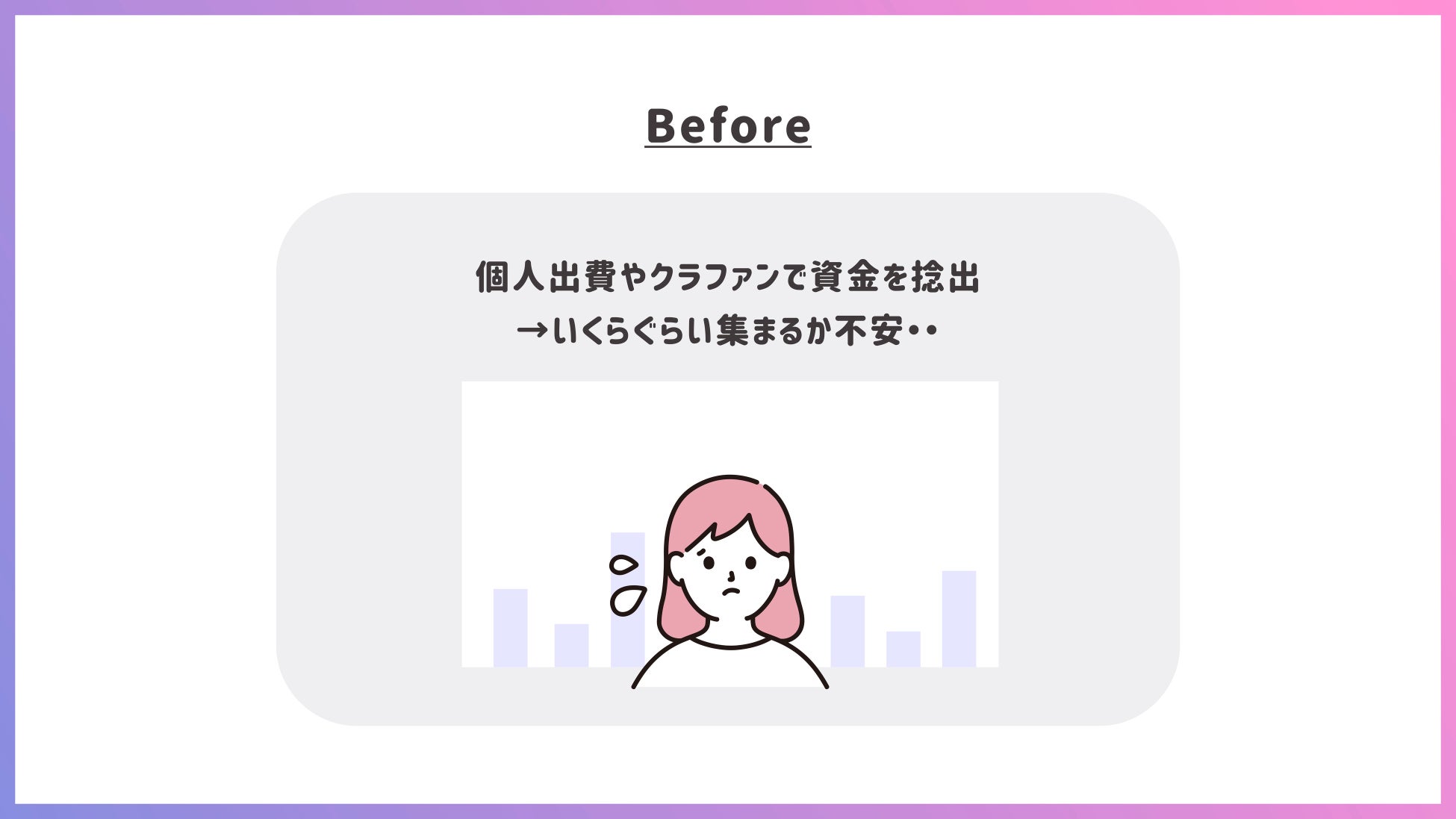 「推しメン」は、クラウドファンディングでは予測が難しい資金集めや、支援者への透明性を保つ難しさなど、ファンダム運営者が抱える悩みを解決するサービスです。