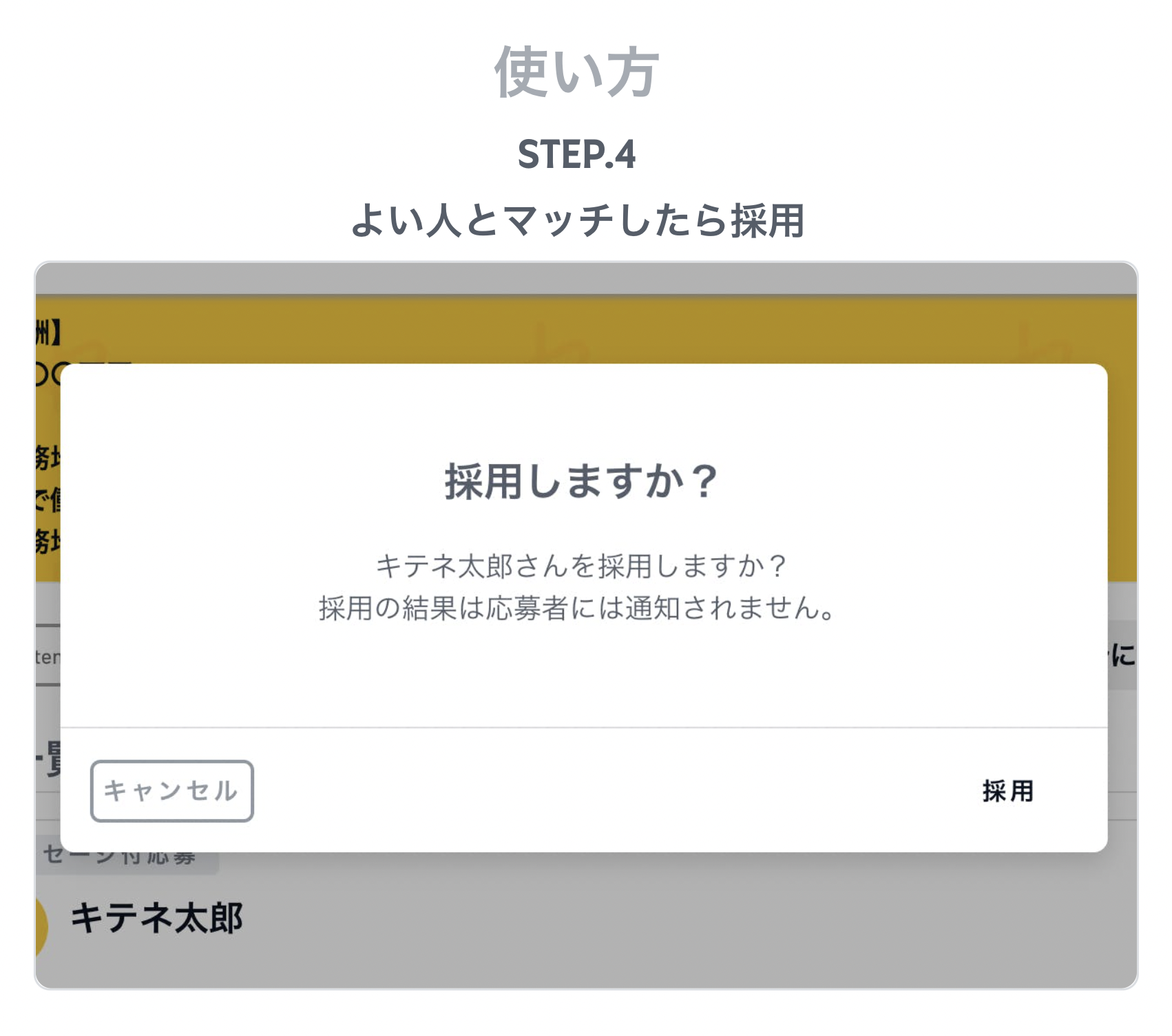 従来の履歴書や採用面接と比べ、kitene特有の強みです。