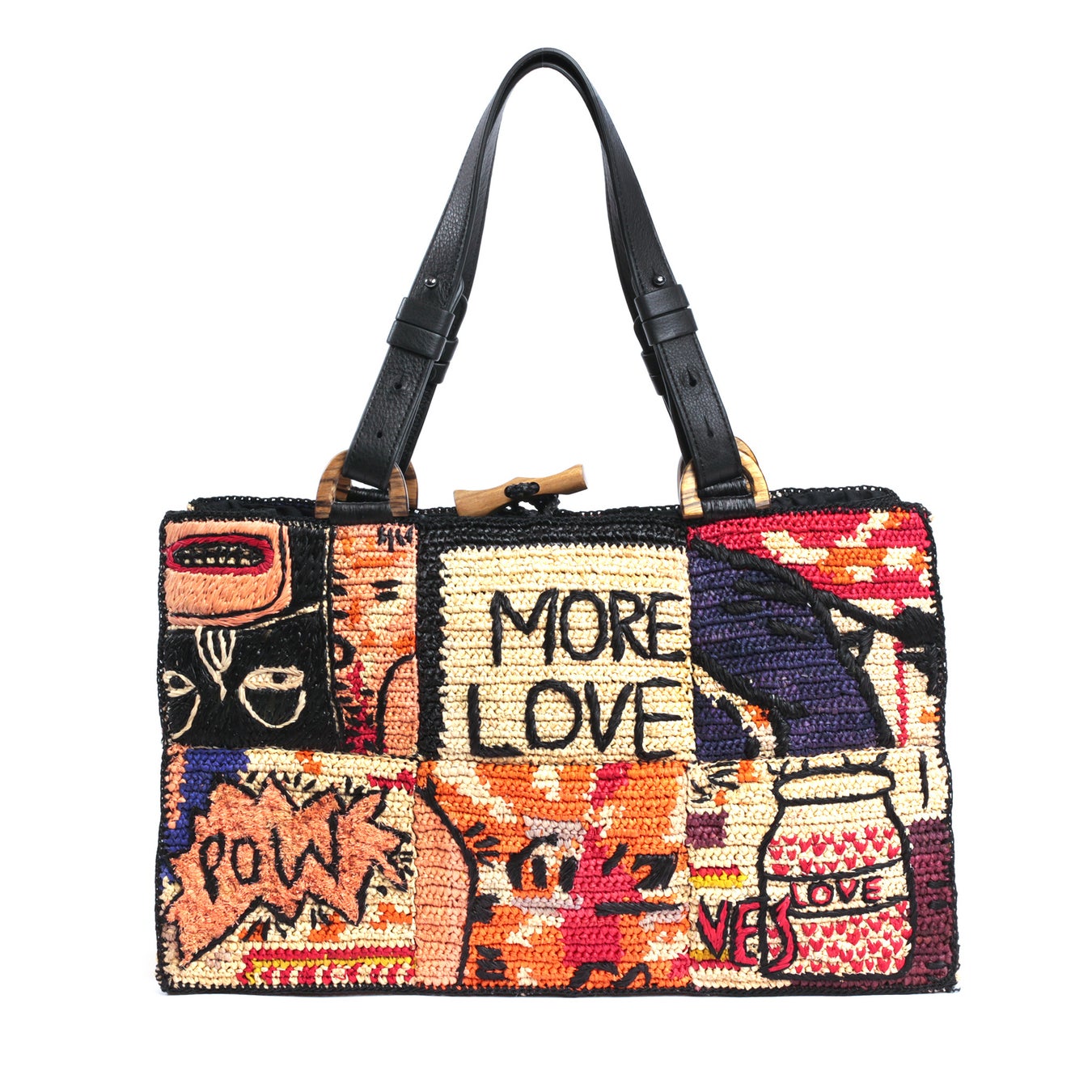 マルワン・チャマアが今回のコラボレーションのために描いた作品【MORE LOVE】は、長く続くパンデミックの中で、彼の感じたままを表現しています。本作の、テキストとポップアートを融合したグラフィティ壁画のようなスケッチが、ジャマン・ピュエッシュを象徴する手刺繍のラフィアバッグとラフィアキーチャームに再現されました。マルワンはメッセージを込めたシリーズ作品の制作を好み、その作品はストーリーテラーであると語ります。本作は、世界が直面するパンデミックの後には”LOVE“が必要である、という世界へ向けたメッセージを込めて制作されました。