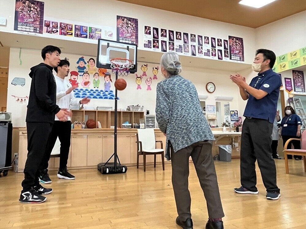 「イマドキシニア」プロジェクトが始まった当初から、コロナ禍に直面しながらも、屋外やオンラインでの「そよ風」を利用するお客さまと選手の交流や、スポーツ要素を取り入れた機能訓練プログラムの開発に取り組んできました。現在は定期的に「そよ風」の施設内で選手との交流イベントを開催し、試合観戦やライブビューイングなど、さまざまな形でスポーツを楽しんでいます。これにより、スポーツやチームに興味を持っていなかった方々が、推しの選手を応援し、楽しんでいる姿が増えました。