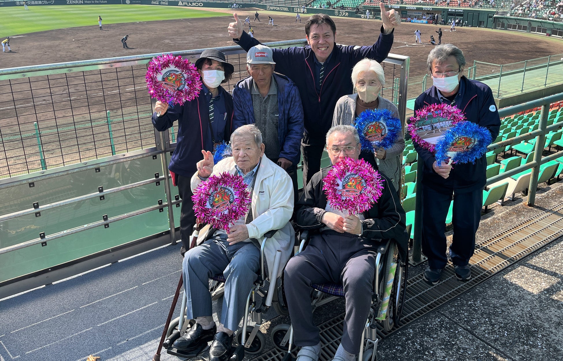 「そよ風」のお客さまの声:「スポーツ観戦が好きでしたが高齢になり車椅子を使うようになって最近は行けずにおりました。また試合を観ることができるなんてうれしいです!」「試合観戦に行きたいから、リハビリと運動をがんばろうと思えるようになりました。」「『そよ風』に選手が来るようになってから、自宅でも試合を観るのが楽しみになりました。」「次はいつ選手に会えるのかと毎回楽しみです!」