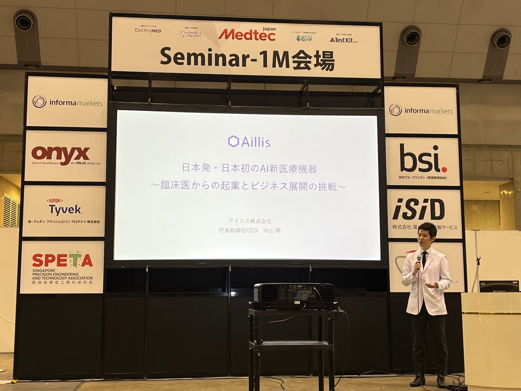 アイリスは、代表取締役の沖山翔が創業からnodoca®(販売名:「nodoca(ノドカ)」、以下nodoca)の上市までの道のりと今後の展望についてプレゼンテーションし、最高賞であるMedtec大賞を受賞しました。
